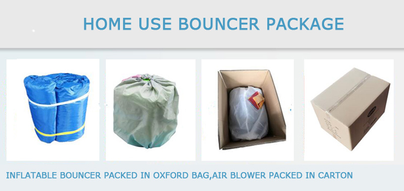 The bouncer is packed by oxford bag,the air blower if packed by carton.